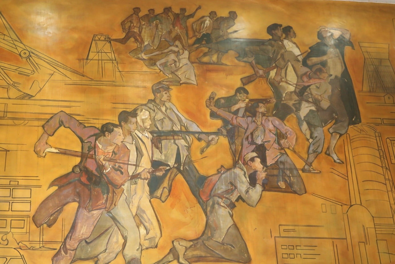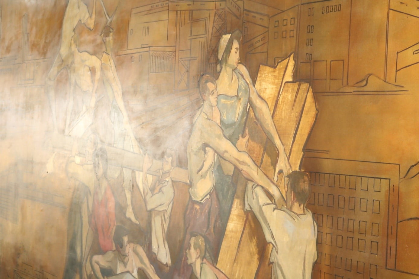 Mural Ismeta Mujezinovića evidentiran je kao umjetničko dobro pod nazivom: ”Mural Ismeta Mujezinovića u Radničkom domu Banovići”, te se od strane Zavoda vodi u Evidenciji kulturno-historijskog i prirodnog naslijeđa općine Banovići. Ova zidna dekoracija nastala je 1967. godine, a njen autor jeste priznati akademski slikar Ismet Mujezinović. Mural se prostire duž samog vrha zida koji se nalazi sa desne strane od ulaza u Radnički dom. Riječ je o velikoj kompoziciji čije dimenzije iznose 12×3 m. Dekoracija se ikonografski odnosi na period Narodnooslobodilačke borbe i izgradnje koji je simbolično prikazan u četiri sukcesivne scene: Pobuna, Borba, Pobjeda i Izgradnja. Pored izuzetnih umjetničkih kvaliteta ovog murala, njegov kulturno-historijski i umjetnički značaj ogleda se u činjenici da predstavlja jedan od rijetkih primjera zidnog slikarstva iz perioda socijalizma na prostoru Tuzlanskog kantona koji je ujedno i sačuvan.